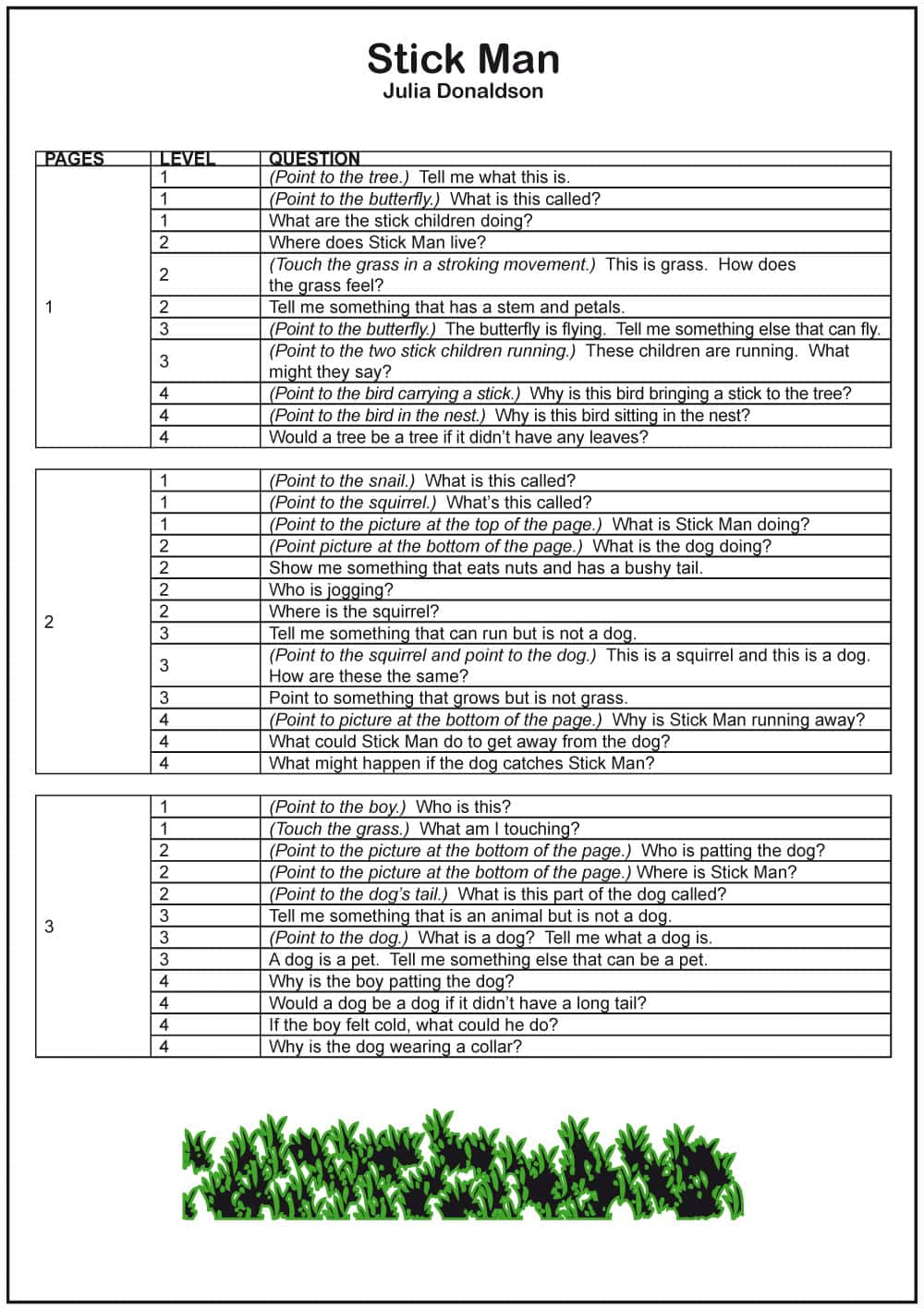 Wise Words Scripts – offer clinicians, teachers and parents readily available questions designed specifically for each book. A script provides a variety of questions at each level of understanding for each page of the book. A teacher or clinician working with a group of children can tailor questions to each child’s language ability.